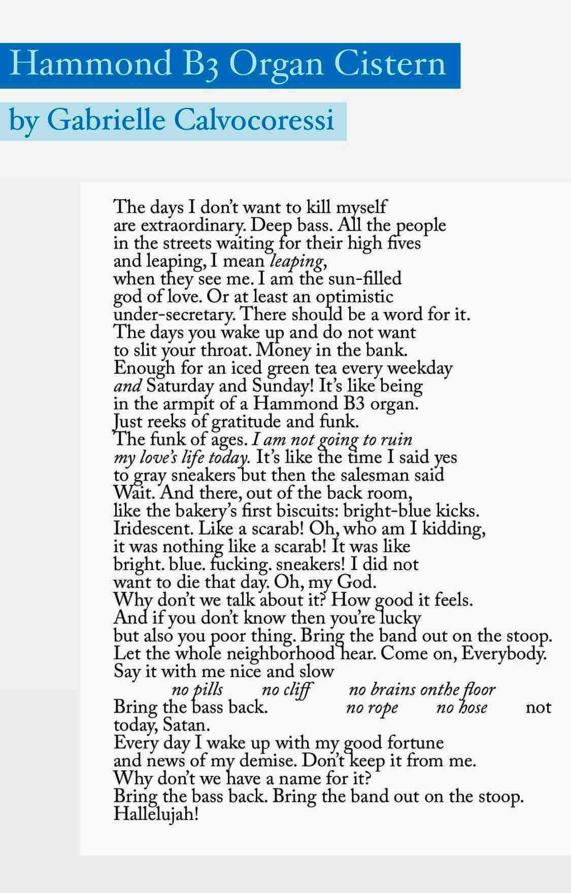 Gabrielle Calvocoressi keepin’ it real with “Hammond B3 Organ Cistern” (found via @trenchfootiepjs)
