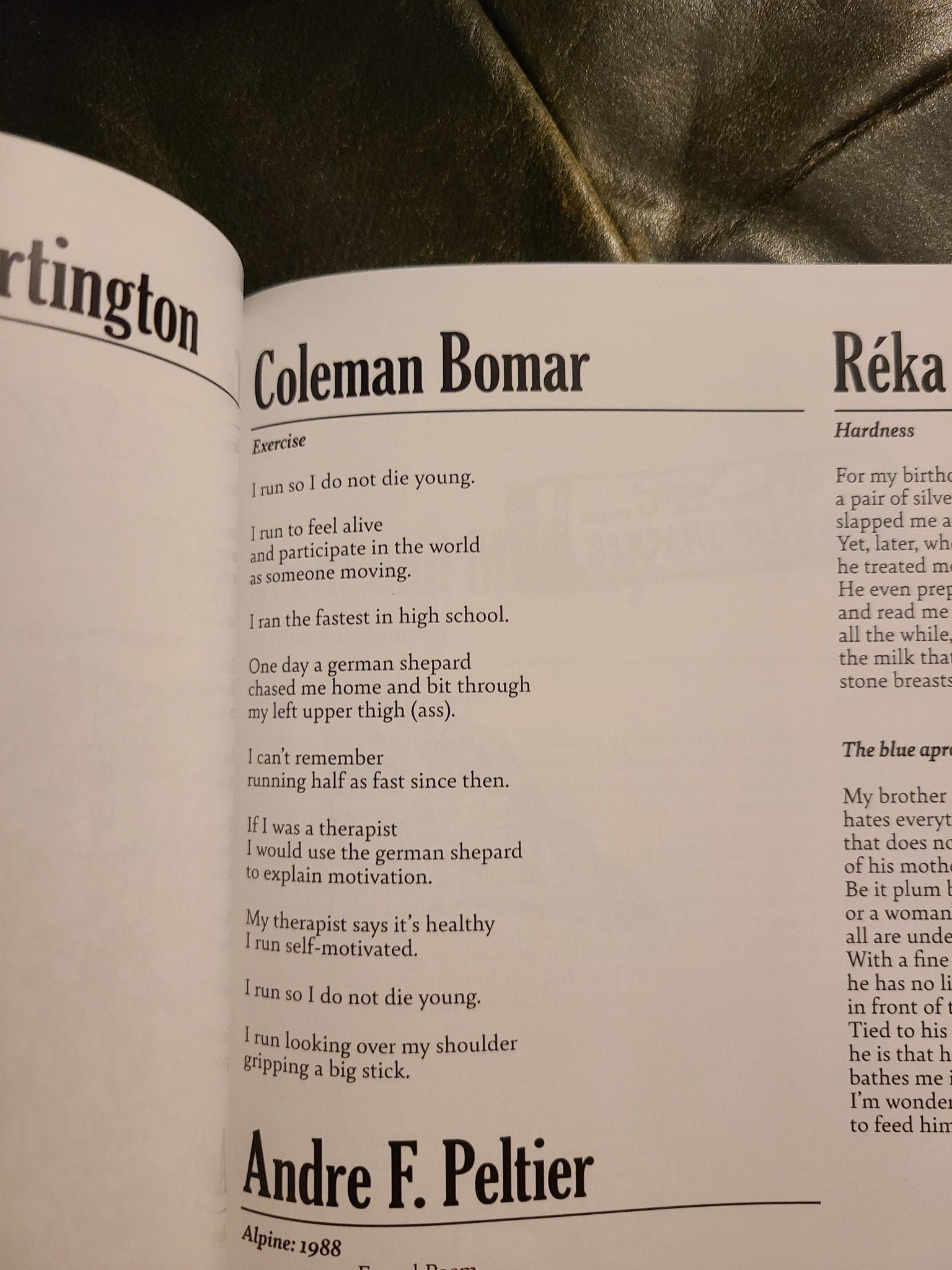 Coleman Bomar’s “Exercise” in Rat World Magazine. There is something special about poets who run.